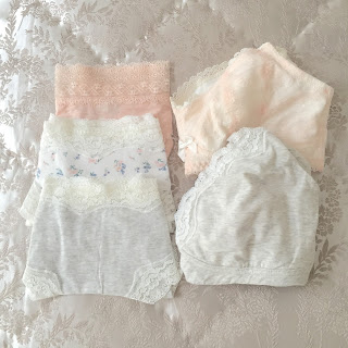 | Levo 6 cuecas todas de algodão e todas acima do meu tamanho actual, acreditem vão se sentir mais confortáveis e menos frustadas no momento de as vestir. No caso dos soutiens a minha escolha recai mais uma vez pelos modelos maternity da oysho, são muito confortáveis e práticos. Um conselho não comprem de copa rija para os primeiros dias... |